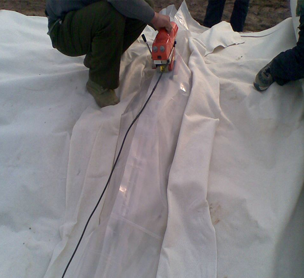 復(fù)合土工膜是在薄膜的一側(cè)或兩側(cè)貼上土工布,形成復(fù)合土工膜。其形式有一布一膜、二布一膜、兩膜一布等。根據(jù)多年實(shí)踐證明,土工膜厚度不小于0.25mm,太薄可能產(chǎn)生氣孔,且易在施工中受損而降低防滲效果。土工膜施工中,特別要注意做到鋪設(shè)不宜過緊,不得打皺,拼接要牢固。要嚴(yán)格按技術(shù)規(guī)范施工,把好準(zhǔn)備、鋪設(shè)、拼接、檢驗(yàn)和回填等五道質(zhì)量關(guān)。由于復(fù)合土工膜良好的防滲效果,目前,寶雞峽灌區(qū)節(jié)水改造與續(xù)建配套項(xiàng)目建設(shè)中,大量采用該材料,受到了設(shè)計(jì)、建設(shè)單位的廣泛好評。