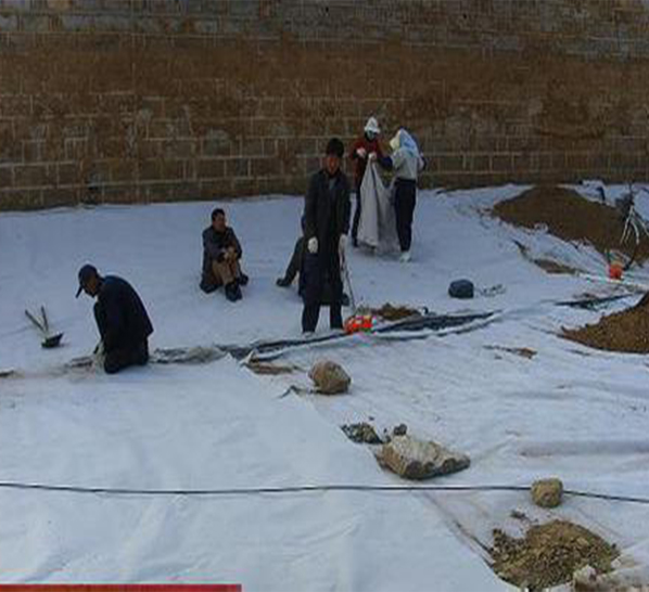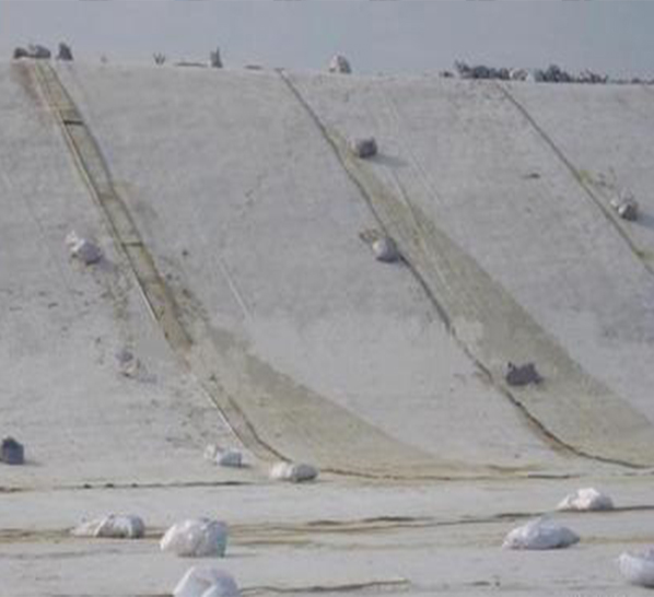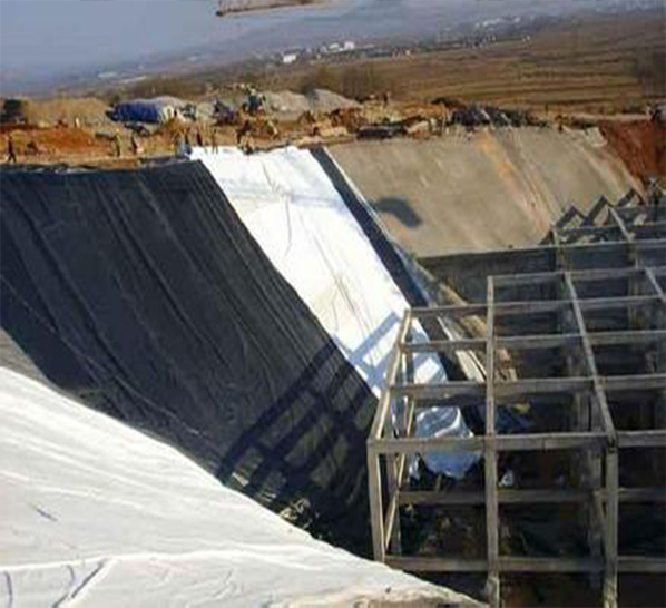 一布一膜有一定的變形量,對(duì)底墊層的凹凸缺產(chǎn)生的應(yīng)力傳遞分散較快,應(yīng)變能力較強(qiáng)。用土工織物代替粒材作為土工膜保護(hù)層,以保護(hù)土工膜防滲層不受損壞,降低墊層粒徑的級(jí)配要求,并能起排水作用。摩擦系數(shù)大,能防止覆蓋層的滑移,比單純HDPE薄膜,復(fù)合土工膜中的無紡布有較大的摩擦系數(shù),復(fù)合土工膜可使坡比增大減少占地面積。撕裂,頂破,穿刺等力學(xué)強(qiáng)度較高。有一定的保溫作用,減少了土體凍脹對(duì)土工膜的破壞,從而減少土體變形。采用埋入式鋪設(shè),有優(yōu)異的抗老化性能,減少了工程的維護(hù)保養(yǎng)。鋪設(shè)施工簡(jiǎn)便,減少運(yùn)輸量,降低工程造價(jià),縮短了工期。