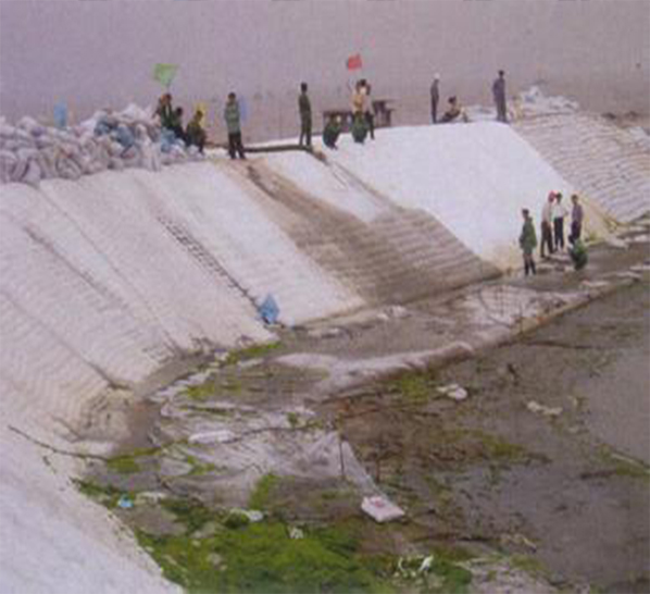 兩布一膜是以塑料薄膜作為防滲基材,與無(wú)紡布復(fù)合而成的土工防滲材料。它的防滲性能主要取決于塑料薄膜的防滲性能。目前防滲應(yīng)用的塑料薄膜,主要有聚氯乙烯(PVC)和聚乙烯(PE),它們是一種高分子化學(xué)柔性材料,比重較小,延伸性較強(qiáng),適應(yīng)變形能力高,耐腐蝕,耐低溫,抗凍性能好。膜的厚度一般為0.30-2.00mm。主要機(jī)理是以塑料薄膜的不透水性隔斷土壩漏水通道,以其較大的抗拉強(qiáng)度和延伸率承受水壓和適應(yīng)壩體變形。而無(wú)紡布亦是一種高分子纖維化學(xué)材料,通過(guò)針刺或熱粘成形,具有較高的抗拉強(qiáng)度和延伸性。目前應(yīng)用于復(fù)合的無(wú)紡布只要有:滌綸短纖針刺土工布、聚酯長(zhǎng)絲紡粘土工布、扁絲塑編布等。它與塑料薄膜結(jié)合后,不僅增大了塑料薄膜的抗拉強(qiáng)度和抗穿刺能力,而且由于無(wú)紡布表面粗糙,增大了接觸面的摩擦系數(shù),有利于復(fù)合土工膜及保護(hù)層的穩(wěn)定。同時(shí),它們對(duì)細(xì)菌和化學(xué)作用有較好的耐侵蝕性,不怕酸、堿、鹽類(lèi)的侵蝕。
