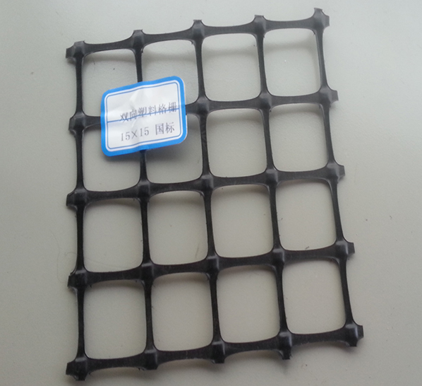 雙向拉伸塑料土工格柵是以聚丙烯(PP)或聚乙烯(PE)為原料,經(jīng)塑化擠出板材、沖孔、加熱、縱向拉伸、橫向拉伸而成。該材料在縱向和橫向上都具有很大的拉伸強度,這種結(jié)構(gòu)在土壤中能夠提供一個更為有效的力的承擔(dān)和擴散的理想連鎖系統(tǒng),適應(yīng)于大面積承載的地基補強。