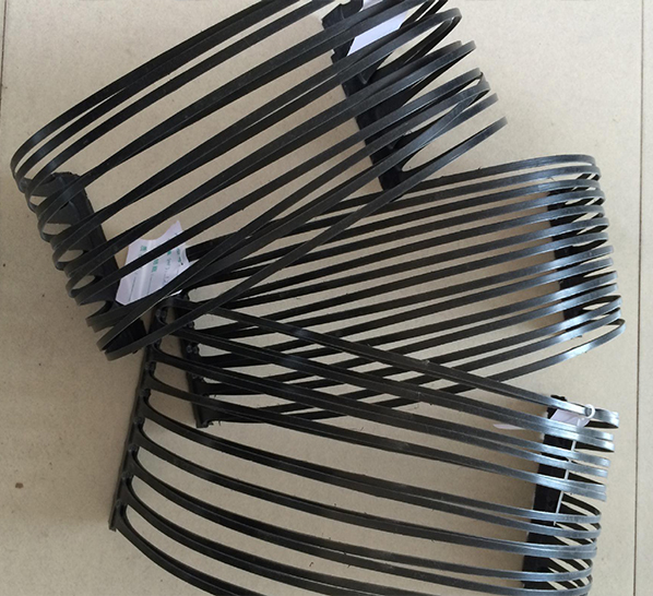 單向拉伸塑料土工格柵是一種高密度聚丙烯(PP)或聚乙烯(HDPE)為主要原料,加入一 定的防紫外線、抗老化助劑,經(jīng)過(guò)單向拉伸使原來(lái)分布散亂的鏈形分子重新定向排列呈線性狀態(tài),經(jīng)擠出壓成薄板再?zèng)_規(guī)則孔網(wǎng),然后縱向拉伸而成的高強(qiáng)度土工材料。這種過(guò)程中使高分子成定向線性狀態(tài)并形成分布均勻、節(jié)點(diǎn)強(qiáng)度高的長(zhǎng)橢圓形網(wǎng)狀整體性結(jié)構(gòu)。此種結(jié)構(gòu)具有相當(dāng)高的拉伸強(qiáng)度和拉伸模量,抗拉強(qiáng)度達(dá)到100-200Mpa,接近低碳鋼的水平,大大優(yōu)于傳統(tǒng)的或現(xiàn)有的加筋材料,特別是我公司此類產(chǎn)品更具有很高水平的高早期(伸長(zhǎng)率在2%—5%)拉伸強(qiáng)度和拉伸模量。給土壤提供了理想的力的承擔(dān)和擴(kuò)散的連鎖系統(tǒng)。該產(chǎn)品拉伸強(qiáng)度大(>150Mpa),適應(yīng)各種土壤,是目前廣為采用的加筋加固材料。