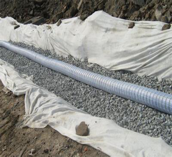 透水管是以防銹彈簧圈支撐管體,形成高抗壓軟式結(jié)構(gòu),無紡布內(nèi)襯過濾,使泥砂雜質(zhì)不能進入管內(nèi),從而達到凈滲水的功能。滌綸絲外繞祉覆層具有優(yōu)良吸水性,能迅速收集土體中多余水份。橡膠筋使管壁被覆層與彈簧鋼圈管體成為有機一體,具有很好的透水功能,滲透水順利滲入管內(nèi),而泥砂雜質(zhì)被阻擋在管外,從而達到透水、過濾、排水之目的。