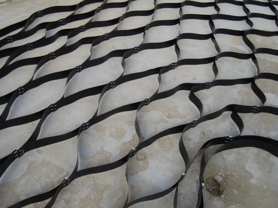 土工格室是由高強(qiáng)度的HDPE或PP共聚料寬帶,經(jīng)過(guò)強(qiáng)力焊接或鉚接而形成的一片網(wǎng)狀格室結(jié)構(gòu)。它伸縮自如,運(yùn)輸時(shí)可縮疊起來(lái),使用時(shí)張開(kāi)并又充填土石或混凝土料,構(gòu)成具有強(qiáng)大側(cè)向限制和大剛度的結(jié)構(gòu)體。它可用來(lái)做為墊層,處理軟弱地基增大地基的承載能力,也可鋪設(shè)在坡面上構(gòu)成坡面防護(hù)結(jié)構(gòu),還可以用來(lái)建造支擋結(jié)構(gòu)等。
