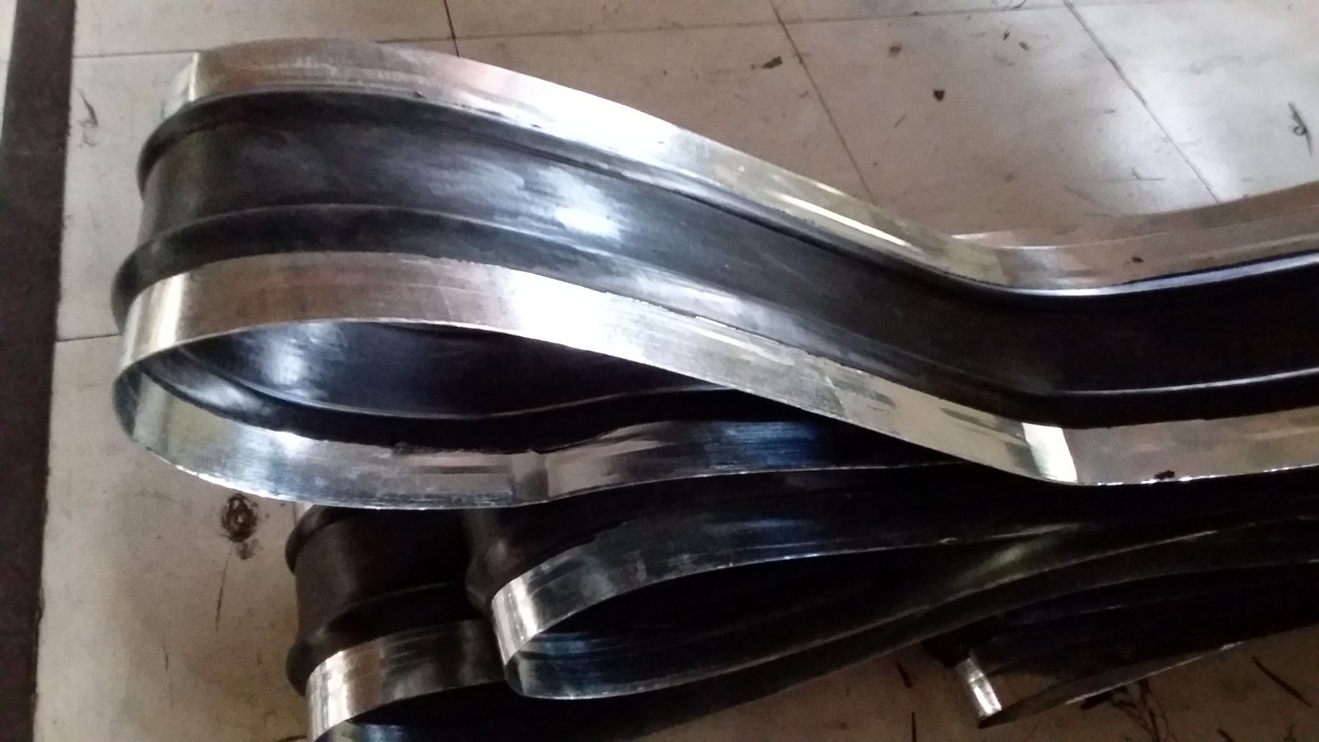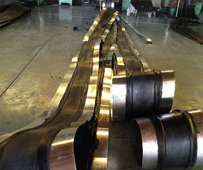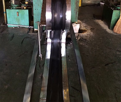 三、工藝流程:我們可以先將經(jīng)過先期處置的鍍鋅鋼帶拔出橡膠兩頭硫化成形,兩者之間的粘結(jié)力的結(jié)實(shí)性,具有分明防滲止水方面的效果。鋼邊止水帶的兩頭橡膠體在構(gòu)造變形時(shí)被緊縮、拉伸、變形,而起到密封止水作用;鍍鋅鋼帶與混凝土有著良好的粘附性,不易零落和松動(dòng),使止水帶能接受較大的拉力和扭力。在施工中由于混凝土澆筑時(shí)的宏大振動(dòng)力和不易固定,會(huì)使普通橡膠止水帶發(fā)生移位、扯離、改變而呈現(xiàn)松動(dòng)和零落,致使在水壓較大的狀況下會(huì)發(fā)生滲漏景象,而采用鋼邊橡膠止水帶時(shí),由于鋼帶與混凝土、鋼帶與橡膠之間不會(huì)發(fā)生新的滲漏縫。
